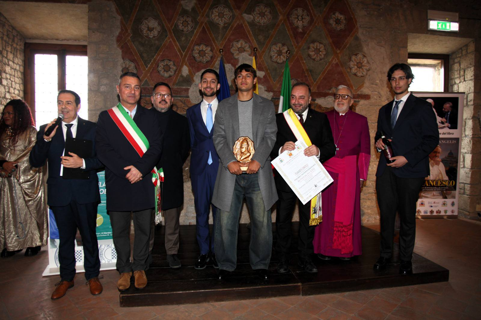 La XXIII Edizione del Premio Bonifacio VIII, iniziata con l’inaugurazione dell’anno accademico 2025 – 2026 lo scorso 28 novembre, ha visto la partecipazione di numerose personalità, tra cui i Cardinali Leonardo Sandri, Gianfranco Ghirlanda, Agostino Marchetto, la Presidente della Repubblica del Kosovo Vjosa Osmani-Sadriu, accolti, oltre che dal professor De Angelis, anche dal Sindaco di Anagni avvocato Daniele Natalia e dal Presidente del Comitato Scientifico monsignor Enrico dal Covolo, dal Vice Presidente dello stesso ufficio monsignor Sergio Maurizio Soldini e dal Presidente della Giuria del Premio monsignor José Manuel del Rio Carrasco.
