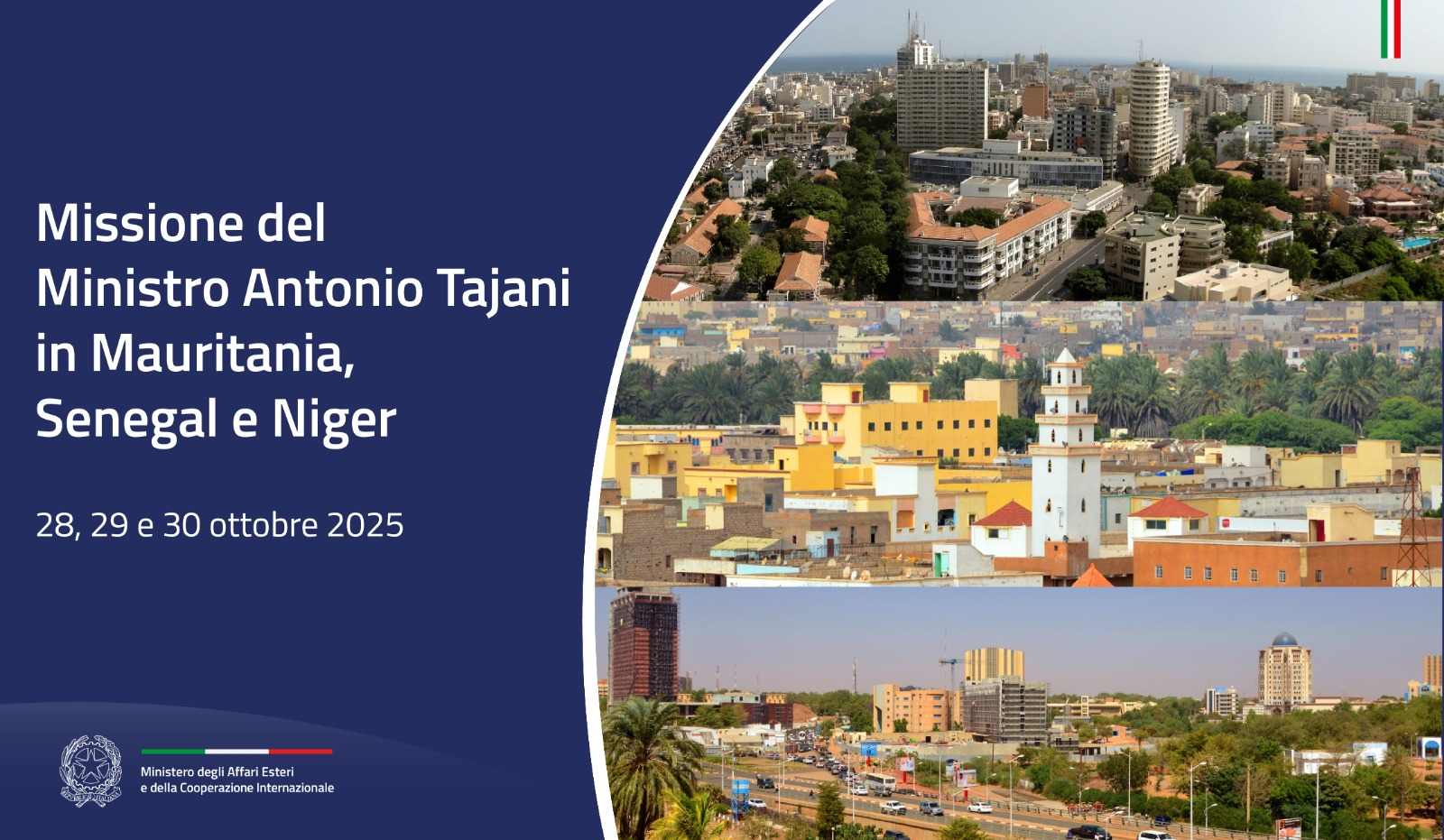Il Ministro degli Affari Esteri e della Cooperazione Internazionale Antonio Tajani e il Ministro dell’Interno Matteo Piantedosi sono oggi a Nouakchott pe la prima tappa di una missione in Africa Sub-sahariana.