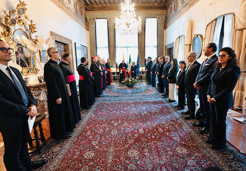 Il Presidente della Repubblica Sergio Mattarella, il Presidente del Consiglio Giorgia Meloni e le alte cariche istituzionali dello Stato italiano e della Santa Sede, hanno partecipato, a Palazzo Borromeo, sede dell’Ambasciata d’Italia presso la Santa Sede, ai colloqui con le delegazioni vaticana e italiana, in occasione della ricorrenza della firma dei Patti Lateranensi e dell’Accordo di modificazione del Concordato.