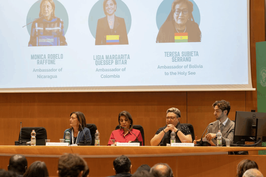 Nel terzo, moderato da Maddalena Celano, si è parlato di “Latin America: The Beating Heart of Social Diplomacy”. Le ambasciatrici Monica Robelo Raffone (Nicaragua), Ligia Margarita Quessep Bitar (Colombia), Mirta Granda Averhoff (Cuba) e Teresa Subieta Serrano (Bolivia presso la Santa Sede) hanno illustrato il modello della “diplomazia sociale”, in cui l’attenzione alla giustizia e alla comunità si intreccia con le relazioni internazionali.