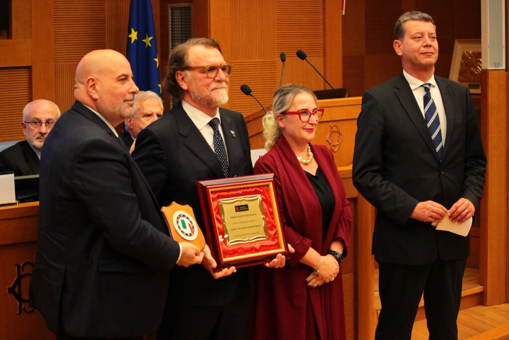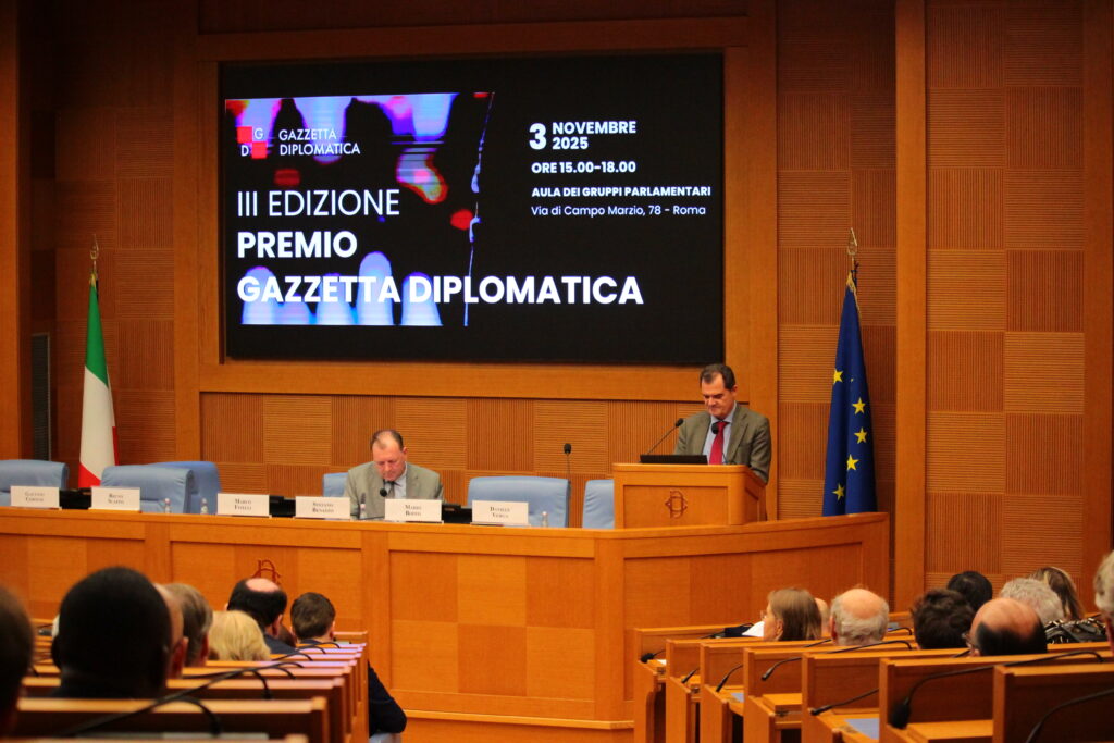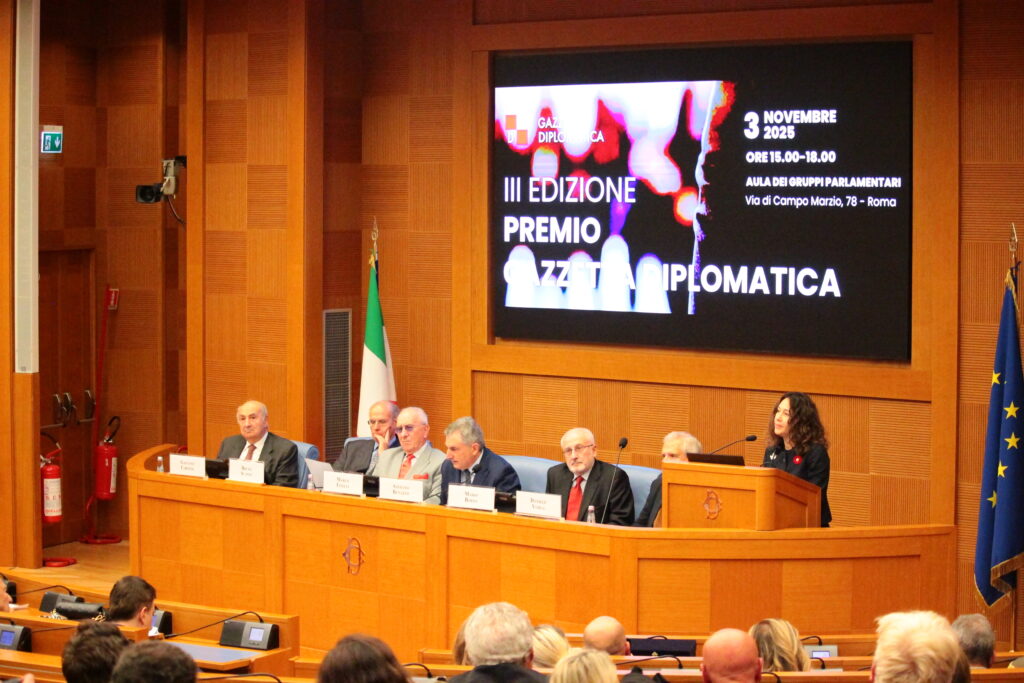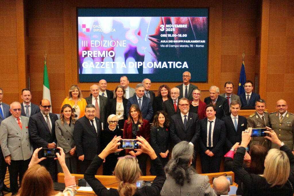 Nella splendida cornice dell’Aula dei Gruppi Parlamentari, a Roma, ieri pomeriggio si è tenuta la cerimonia conclusiva del Premio Gazzetta Diplomatica, giunto quest’anno alla terza edizione. All’evento, organizzato dalla nostra testata giornalistica per celebrare l’eccellenza nella diplomazia, il dialogo tra i popoli e l’impegno per la cooperazione internazionale, hanno preso parte circa duecento ospiti tra diplomatici, autorità, parlamentari, giornalisti e professionisti di diversi settori.