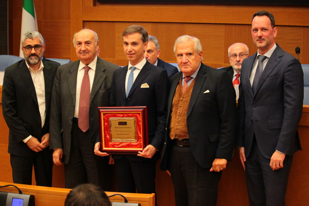 A consegnarle l’ambito riconoscimento è stata l’Ambasciatrice di Romania Gabriela Dancau, vincitrice della passata edizione, assieme al Presidente di Giuria Stefano Benazzo, al Presidente di Assoholding Gaetano De Vito, e al Direttore Generale Lorenzo Echeoni, che ha illustrato la scultura consegnata, un bassorilievo in foglia oro opera del Maestro Elvino Echeoni, giurato del Premio recentemente scomparso e ricordato durante la manifestazione.