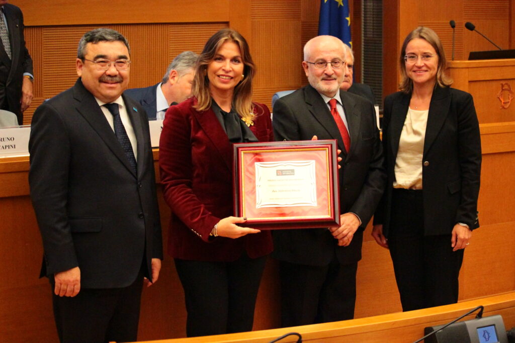 Valentina Mazza, Console della Repubblica del Kazakhstan a Napoli, che ha ritirato il riconoscimento con Yerbolat Sembayev, Ambasciatore del Kazakhstan.