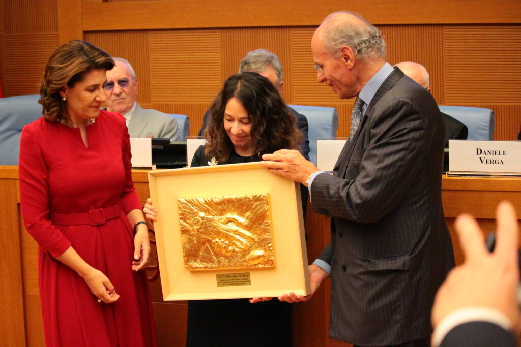 Momento centrale della cerimonia è stata la proclamazione di Elissa Ann Golberg, Ambasciatore dell’Anno 2025. Fra tutti i Capo Missione in Italia, la diplomatica di Montreal si è distinta nell’ultimo anno solare, a detta della giuria del Premio, per la sua leadership visionaria e il suo impegno nel costruire ponti tra culture e istituzioni.