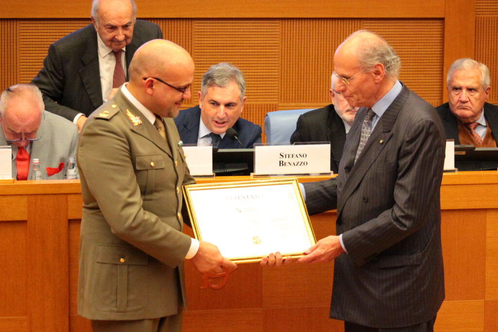 Un attestato di merito è stato conferito al Maggiore Filippo Cangiamila, Maestro Direttore della Banda dell’Esercito, per l’eccellenza artistica, la leadership ispirata e il costante impegno nella valorizzazione della tradizione musicale militare italiana. “Con maestria e passione – si legge nelle motivazioni del Premio – ha saputo guidare la Banda dell’Esercito verso traguardi di prestigio nazionale e internazionale, contribuendo con il suo talento a rafforzare il legame tra le Forze Armate e la cittadinanza”.