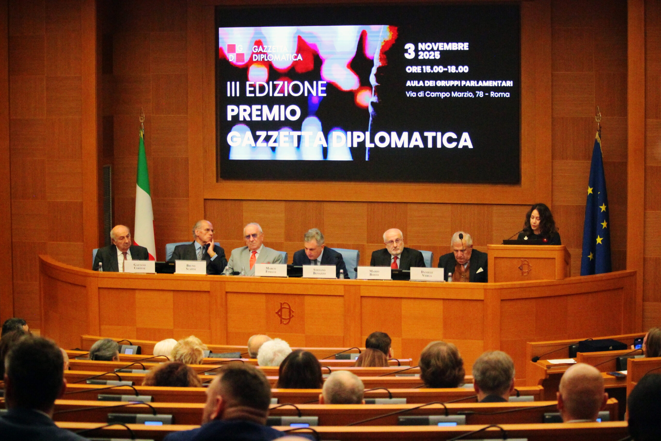 Nella splendida cornice dell’Aula dei Gruppi Parlamentari, a Roma, ieri pomeriggio si è tenuta la cerimonia conclusiva del Premio Gazzetta Diplomatica, giunto quest’anno alla terza edizione. All’evento, organizzato dalla nostra testata giornalistica per celebrare l’eccellenza nella diplomazia, il dialogo tra i popoli e l’impegno per la cooperazione internazionale, hanno preso parte circa duecento ospiti tra diplomatici, autorità, parlamentari, giornalisti e professionisti di diversi settori.