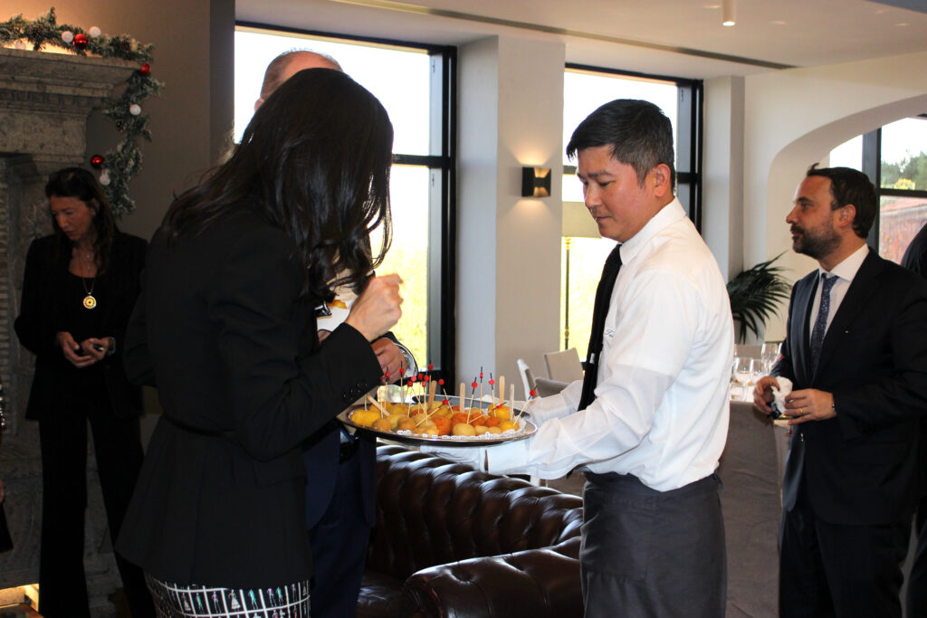 Il brindisi finale, occasione propizia per lo scambio degli auguri di Natale, è stato accompagnato dall’ottimo vino Fendi, a suggello di una giornata che ha intrecciato diplomazia, cultura e stile italiano.