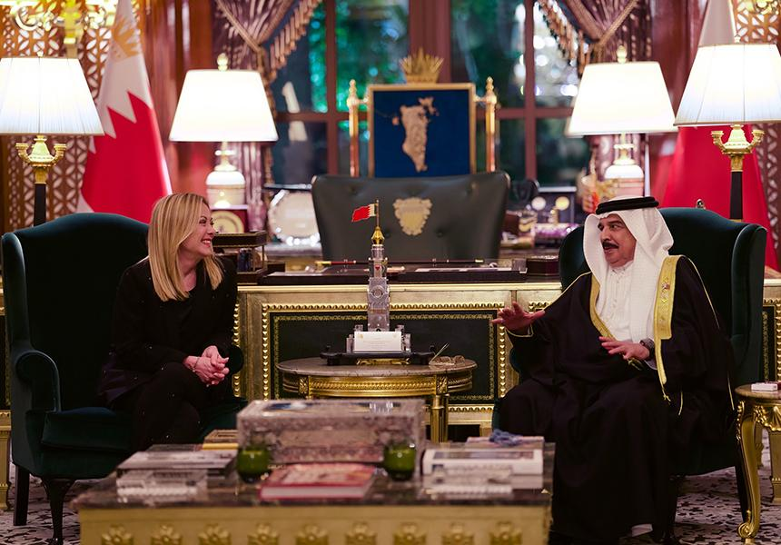 Il Presidente del Consiglio, Giorgia Meloni, è a Manama, nel Regno del Bahrein, per prendere parte al Vertice del Consiglio di Cooperazione del Golfo. Al suo arrivo, martedì 2 dicembre, l’accoglienza da parte del Principe Ereditario e Primo Ministro del Regno del Bahrein, Salman bin Hamad Al-Khalifa. In seguito, il Presidente Meloni, presso lo Sakhir Palace, ha avuto un incontro con il Re del Bahrein, Hamad bin Isa Al-Khalifa, con il quale ha intrattenuto un colloquio che ha confermato la comune volontà di proseguire nel percorso di consolidamento dei rapporti bilaterali, inaugurato dalla conclusione, lo scorso settembre, del Memorandum istitutivo del Partenariato Strategico sugli Investimenti e rafforzato dai quattro incontri avuti dal Presidente del Consiglio con i vertici del Regno del Bahrein nel solo 2025.