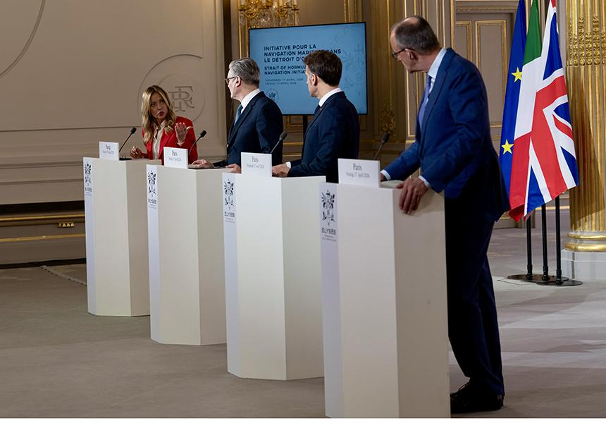 Il Presidente del Consiglio, Giorgia Meloni, ha partecipato alla Conferenza sulla navigazione marittima nello Stretto di Hormuz, a Parigi presso il Palazzo dell’Eliseo. Al termine ha rilasciato le dichiarazioni congiunte con il Presidente della Repubblica francese, Emmanuel Macron, il Primo Ministro del Regno Unito, Keir Starmer, e il Cancelliere federale della Germania, Friedrich Merz.