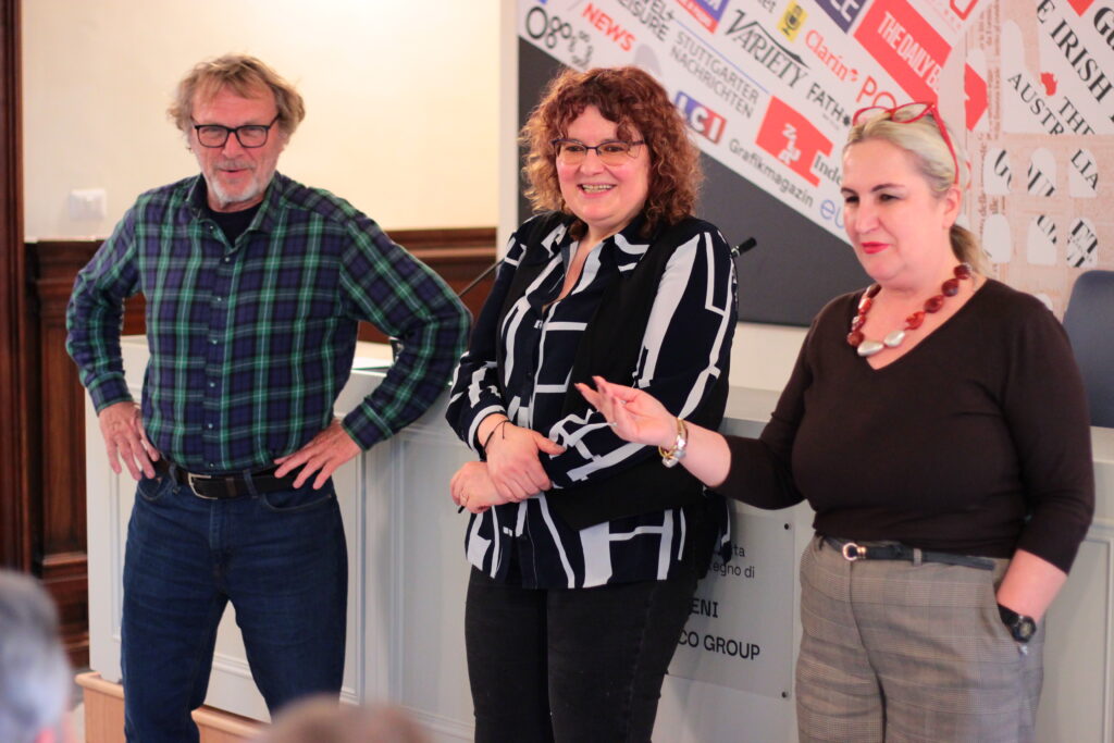 La Presidente Postelnicu ha omaggiato redattori e giurati di Gazzetta Diplomatica con un taccuino e l’Annuario ufficiale della Stampa Estera, in ricordo della giornata e simbolo di amicizia.