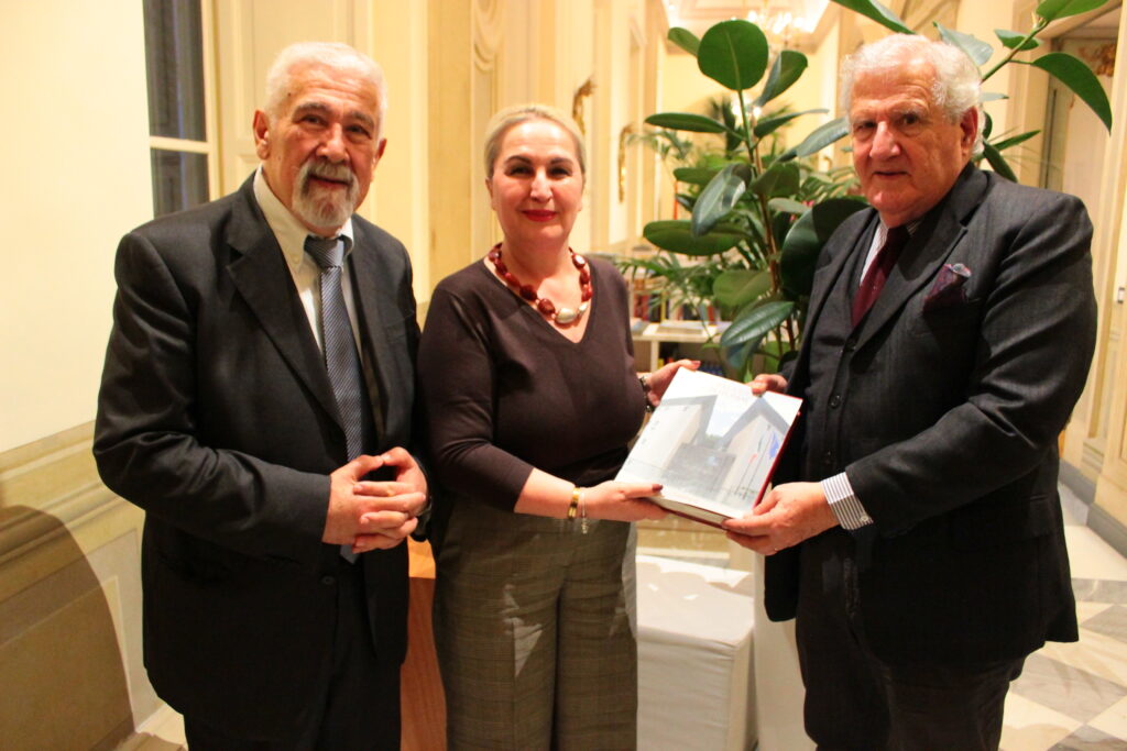 Non sono mancati i doni istituzionali, nel segno della tradizione: il Direttore di Gazzetta Diplomatica ha consegnato alla Presidente Postelnicu il Volume da collezione dell’Ambasciatore Gaetano Cortese (giurato del premio Gazzetta Diplomatica) “Villa Stolojan – Residenza d’Italia a Bucarest“, edito da Colombo, mentre l’Ambasciatore Daniele Verga e il giurato Leonardo Cenci hanno donato alla Consigliera Alba Kepi una copia del Volume “Il Palazzo sul Potomac. L’Ambasciata d’Italia a Washington“, sempre a cura del diplomatico italiano.