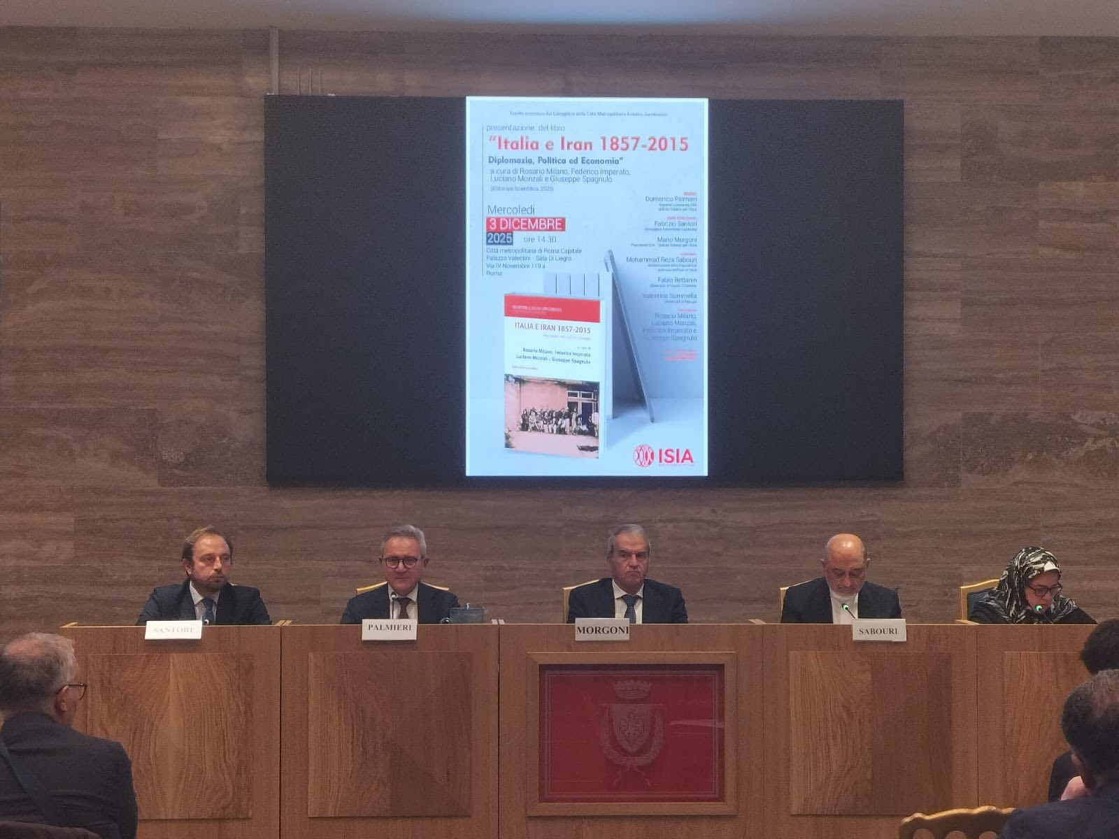 Nel pomeriggio di ieri, nella Sala Di Liegro di Palazzo Valentini, sede della Città Metropolitana di Roma Capitale, organizzata dall’Istituto Italiano per l’Asia, si è tenuta la presentazione ufficiale del libro “ITALIA E IRAN 1857-2015. Diplomazia, Politica ed Economia”, a cura di Rosario Milano, Luciano Monzali, Federico Imperato e Giuseppe Spagnulo.