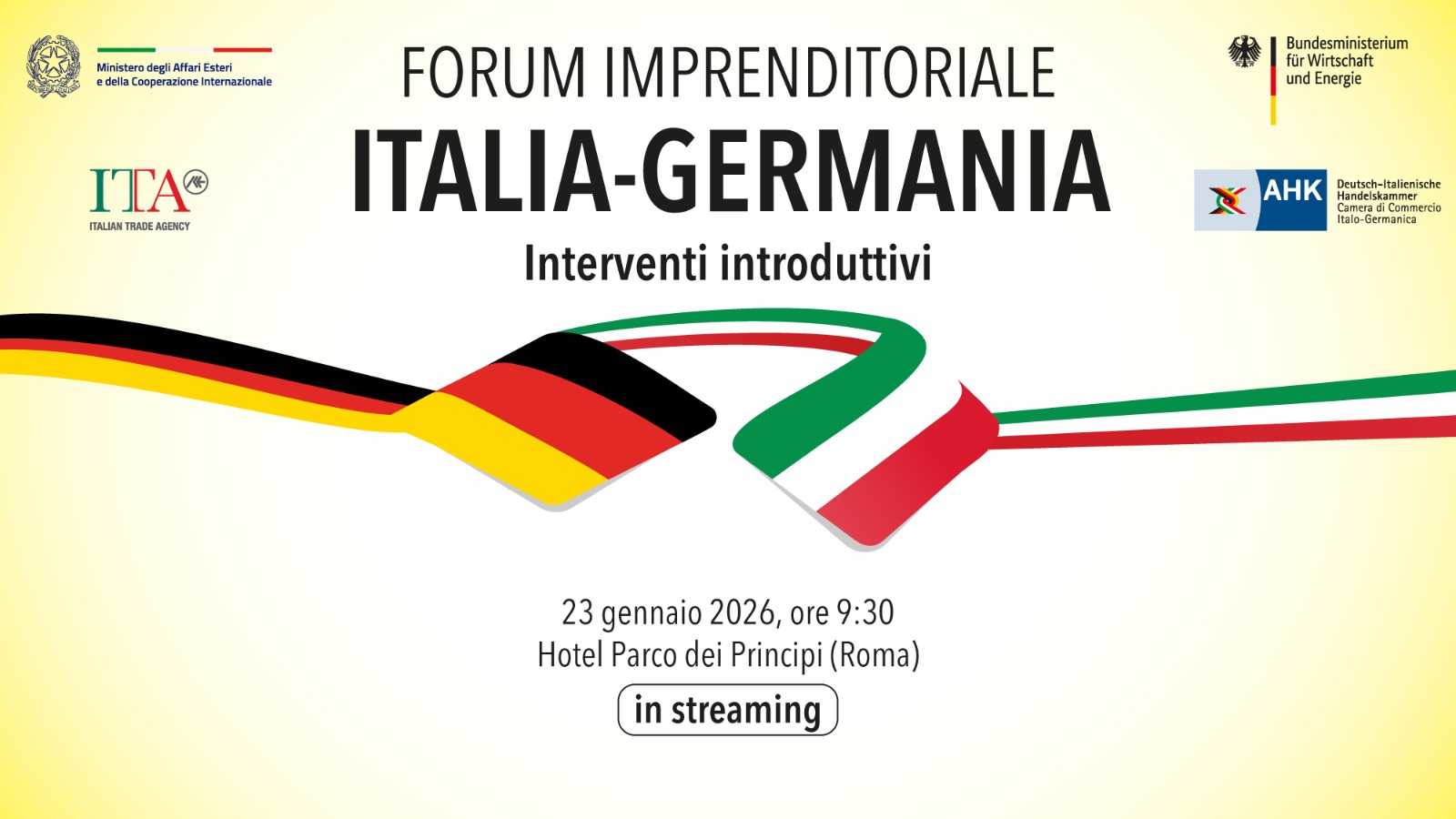 Per l’Italia, il Business Forum con la Germania rappresenta un appuntamento strategico. La Germania è il nostro primo partner commerciale, prima destinazione dell’export italiano e principale fornitore, con un interscambio che supera i 150 miliardi di euro annui. Il Forum sarà un’occasione per sostenere le imprese italiane e discutere, in panel settoriali dedicati all’industria avanzata (con focus su automotive, siderurgia e farmaceutica), alle infrastrutture e alla connettività, all’energia, alla difesa, alla sicurezza e all’aerospazio, di come accrescere la competitività delle industrie italiane e tedesche, fortemente integrate. Il business forum, che vedrà anche incontri B2B, sarà chiuso dagli interventi del Presidente del Consiglio, Giorgia Meloni, e del Cancelliere federale, Friedrich Merz.