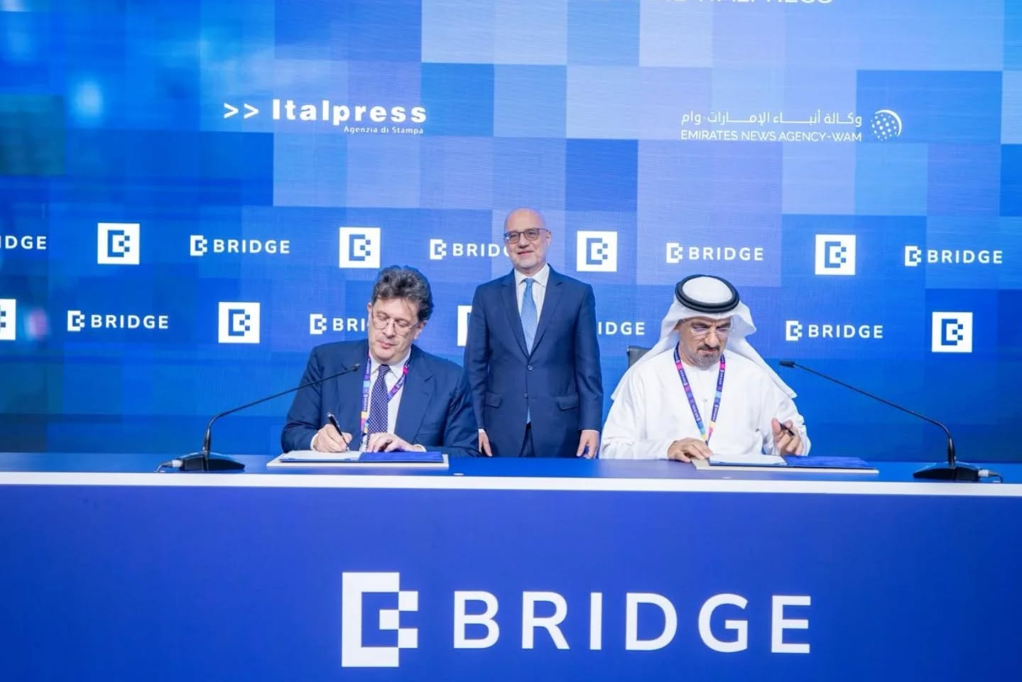 A sottoscrivere il documento il Direttore di Italpress, Gaspare Borsellino, e il Vice Chairman di BRIDGE, Jamal Mohammed Obaid Al Kaabi.