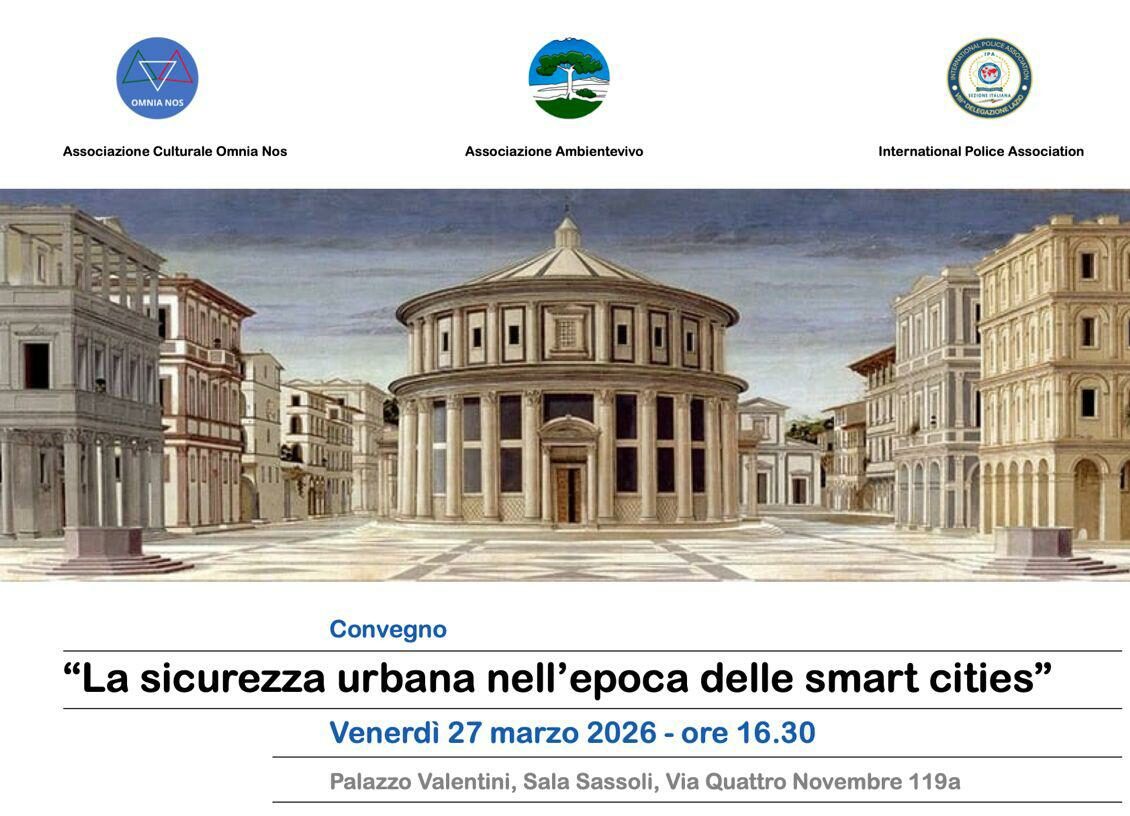 Venerdì 27 marzo, alle ore 16.30, Palazzo Valentini (Sala Sassoli – Via Quattro Novembre 119a) ospita il convegno “La sicurezza urbana nell’epoca delle smart cities”, promosso dall’Associazione Culturale Omnia Nos, dall’Associazione Ambientalista Ambientevivo e dalla International Police Association – sezione Lazio. L’iniziativa si inserisce nel più ampio confronto sul futuro di Roma come smart city e sulle trasformazioni in atto in vista del Giubileo 2025.