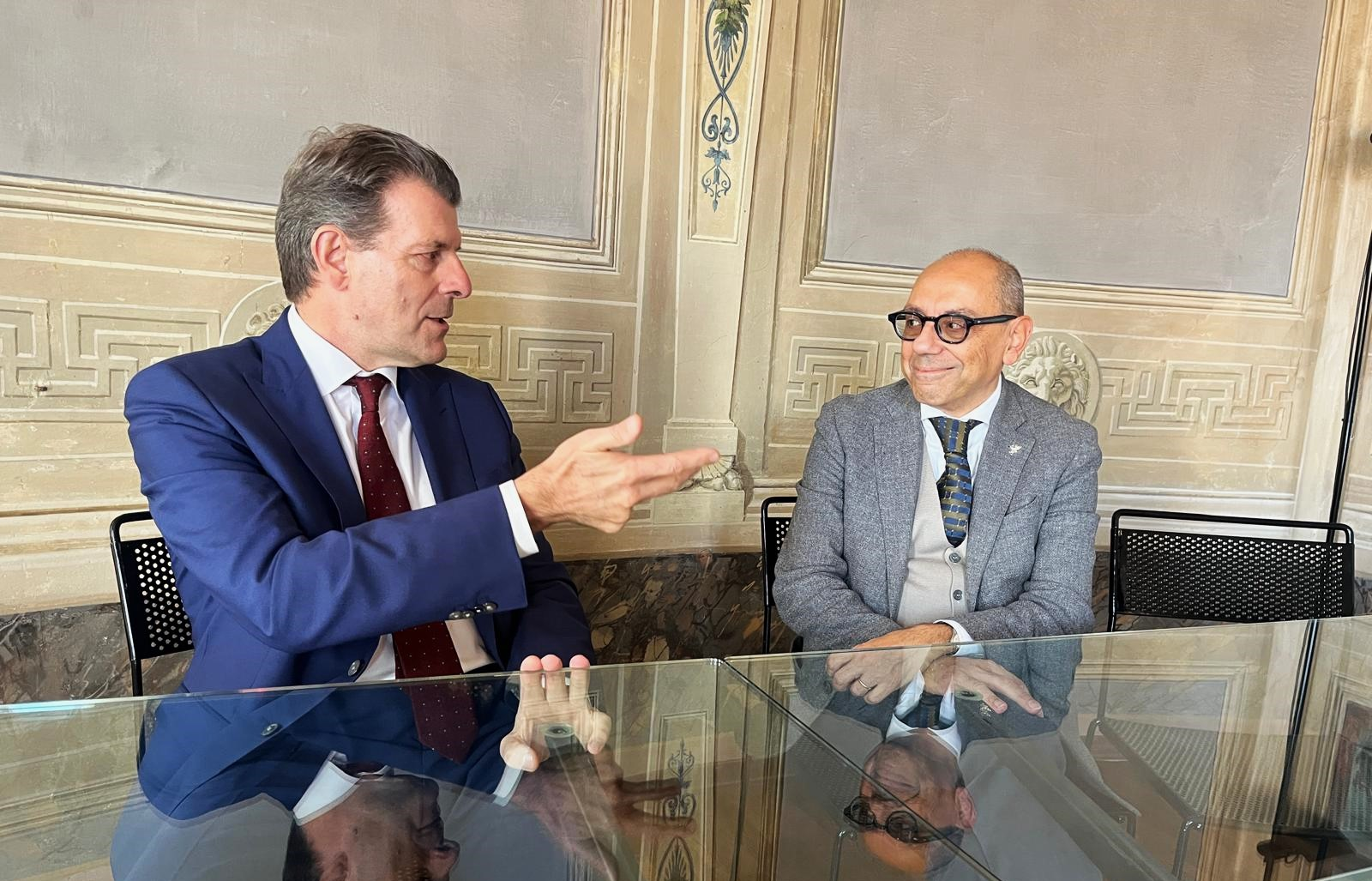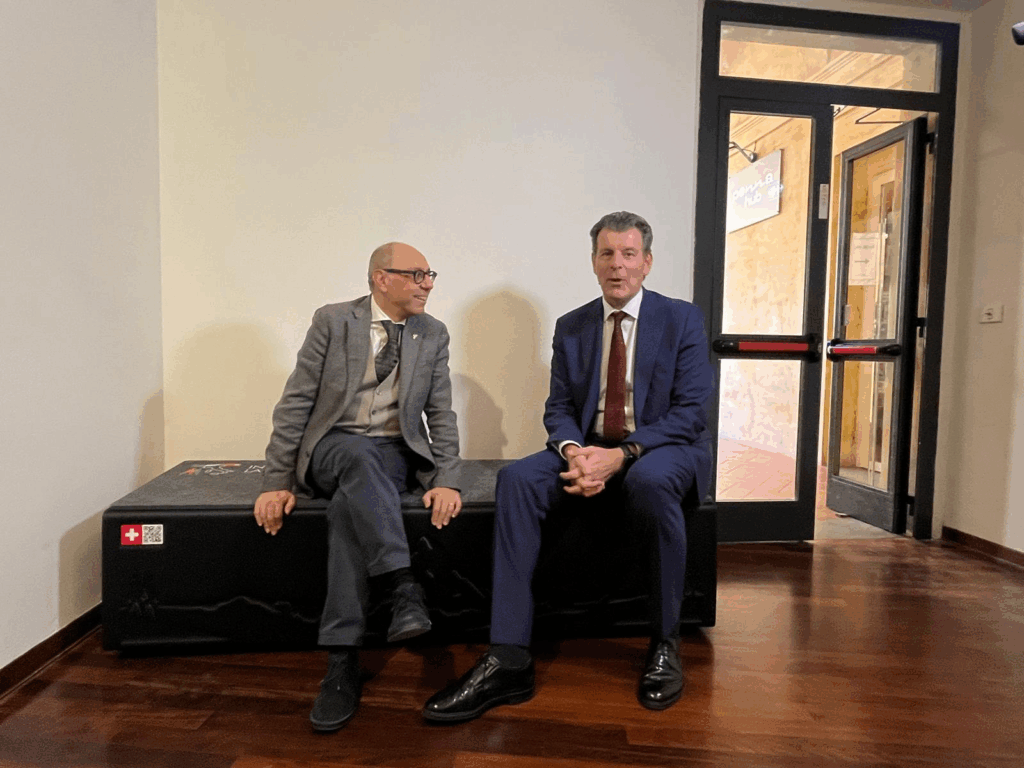 Si è svolta ieri mattina la visita di Roberto Balzaretti, Ambasciatore di Svizzera in Italia, al Comune di Perugia, rappresentato dal vicesindaco con deleghe alle politiche culturali Marco Pierini. Nel corso di un incontro cordiale a palazzo della Penna, Balzaretti ha presentato il progetto dell’Ambasciata “In cammino con la Svizzera”, che, nei prossimi due anni, prevede incontri in tutte le venti regioni d’Italia con i protagonisti istituzionali, imprenditoriali, accademici e della ricerca, nonché con le associazioni e le istituzioni culturali che ogni giorno, attraverso la loro attività, contribuiscono a costruire e rafforzare le relazioni tra i due Paesi. Per l’occasione, il Comune ha ricevuto in dono una speciale panchina prodotta in Svizzera con stampante 3D e materiali riciclati. Resterà posizionata all’ingresso del Centro per le arti contemporanee.