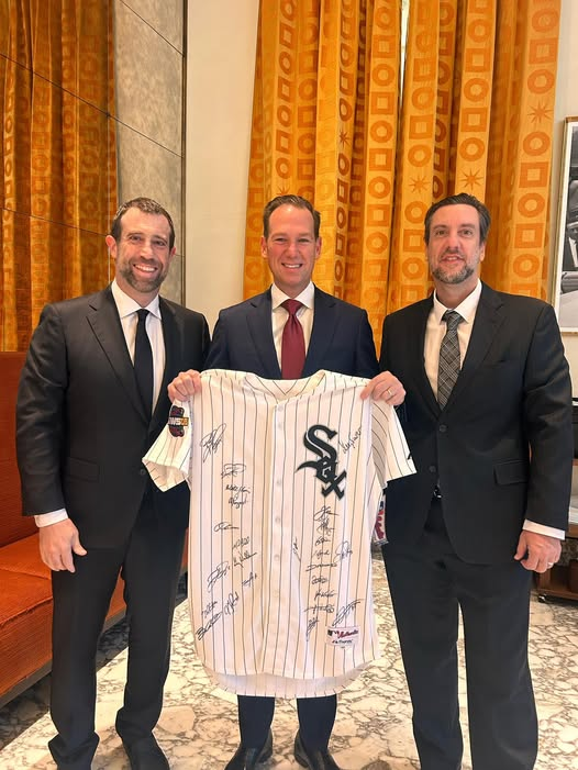 L’Ambasciata degli Stati Uniti presso la Santa Sede ha accolto oggi Justin Ishbia, proprietario dei Chicago White Sox, e Clay Travis, fondatore della piattaforma sportiva OutKick, che hanno incontrato l’Ambasciatore Brian Francis Burch.