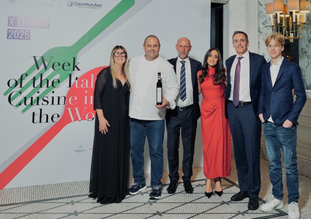 L’Ambasciatore Di Gianfrancesco con Bobo Cerea Da Vittorio e Biava alla settimana della cucina italiana nel mondo a Baku 2025