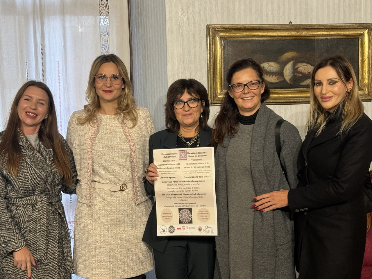 La delegazione polacca della quale faceva parte Anna Urszula Kurdziel, già Vice Ambasciatore della Repubblica di Polonia presso la Santa Sede e già Console dell’Ambasciata di Polonia in Italia, ha portato con sé non solo la maestria delle proprie mani, ma anche la testimonianza di una tradizione viva, che dialoga con quella offidana in un intreccio di esperienze e prospettive. L’incontro ha offerto l’occasione di celebrare ciò che unisce le due comunità e di gettare le basi per nuove collaborazioni, capaci di valorizzare il merletto come patrimonio immateriale e come strumento di diplomazia culturale.