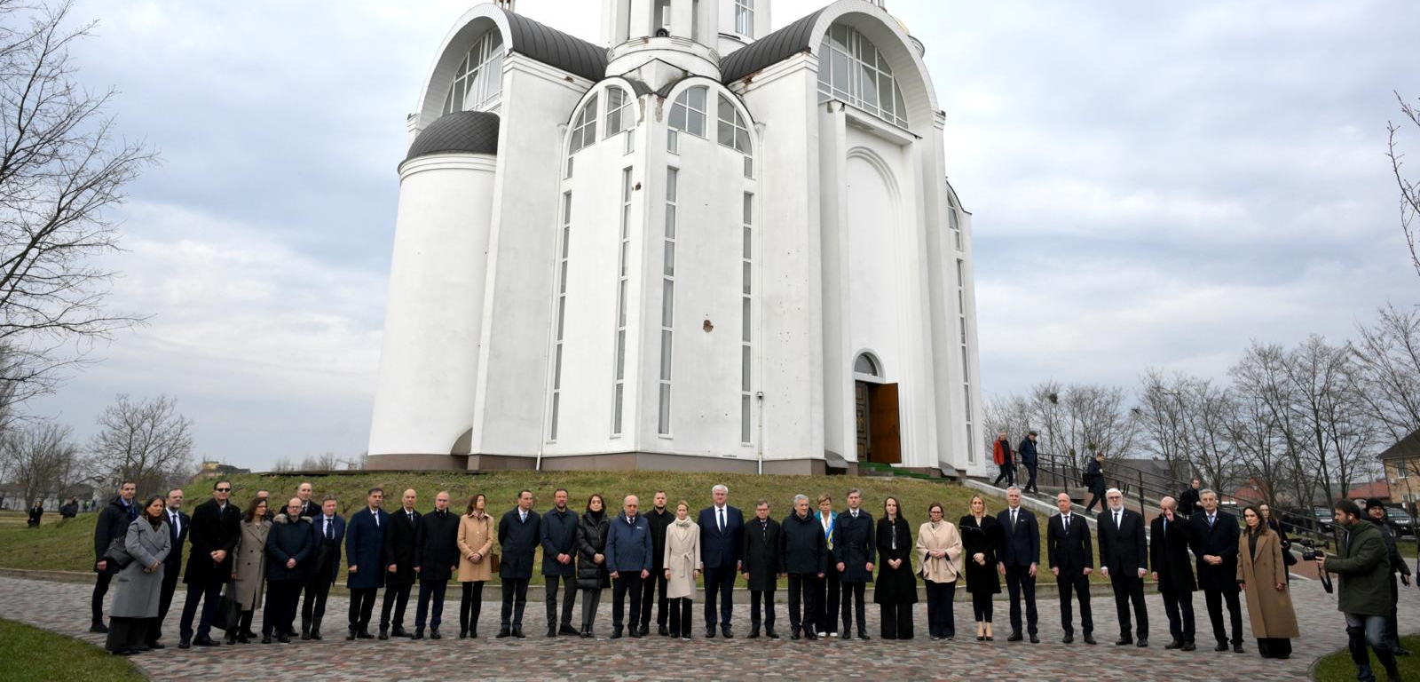 Prima dell’avvio dei lavori, i Ministri degli Esteri UE hanno partecipato alle commemorazioni organizzate dalle autorità ucraine per rendere omaggio alle vittime delle atrocità commesse dall’esercito russo a Bucha, Irpin e Borodyanka nel marzo 2022. Secondo l’Ufficio dell’Alto Commissario ONU per i Diritti Umani sono 73 i civili rimasti uccisi durante il breve periodo di occupazione russa dell’area, cui si aggiungono le segnalazioni di ulteriori 105 omicidi.