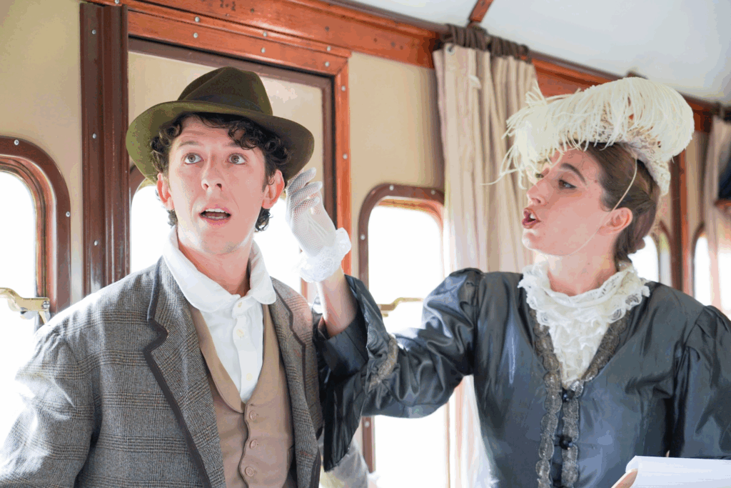 L’antica linea ferroviaria inaugurata nel 1874 e riattivata nel 2014 collega Agrigento Bassa a Porto Empedocle, attraversando la Valle dei Templi, uno dei paesaggi più iconici al mondo. A bordo delle carrozze storiche “Terrazzini” degli anni ’30, il pubblico è guidato da undici performer in un racconto che intreccia teatro, letteratura, musica e memoria. Prendono vita gli scrittori Pirandello, Camilleri e Sciascia, ma anche figure meno conosciute oggi, come la cantante Lina Termini, un’agrigentina celebre in Italia negli anni ’30, che incise brani come “Ma l’amore no” e “Lili Marlene”.
