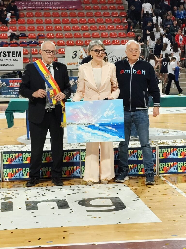 In tribuna anche Roberto Galanti, Console Onorario della Repubblica di Moldova nelle Marche ed Abruzzo e Consigliere nazionale della Federazione dei Diplomatici e Consoli esteri in Italia (FENCO), che assieme al Presidente Ambalt Sergio Santomo ha premiato la squadra prima classificata alla quale, assieme al trofeo, è stata consegnata anche una bellissima opera realizzata dall’artista Grazia De Angelis.